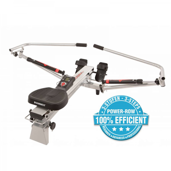 The Hammer Cobra rower complies with this and offers you additional professional details, such as: an aluminum frame, the height of the aluminum guides can be adjusted in three positions for an even more intensive exercise, a computer for easy-to-read training data and a reliable heart rate measurement during your exercise.