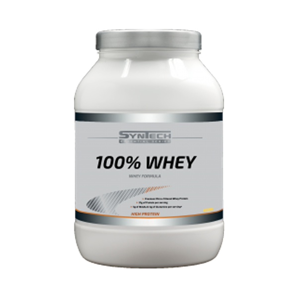 100% Whey van SynTech Nutrition is een proteïne shake die alleen bronnen van weiproteïnen concentraat bevat. 100% Whey is van hoge kwaliteit, smaakt lekker en mixt gemakkelijk. 100% Whey bevat 5,3 gr BCAA’s en 4,1 gr Glutamine per serving. Het is een snel opneembare proteïne en heeft een hoge biologische waarde.