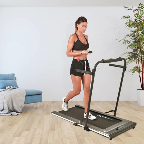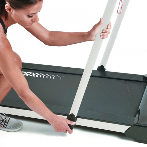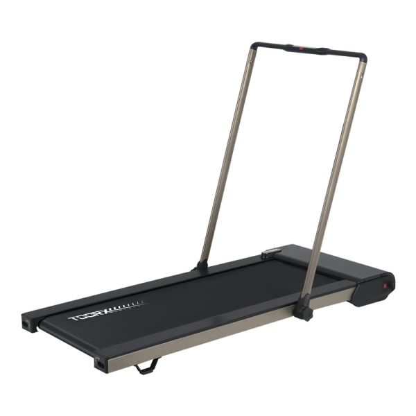De Toorx City Compact is een ultracompacte loopband met een dikte van slechts 13,8 cm. In een rechtopstaande positie neemt het een extreem kleine ruimte in die gelijk is aan 0,11 m².